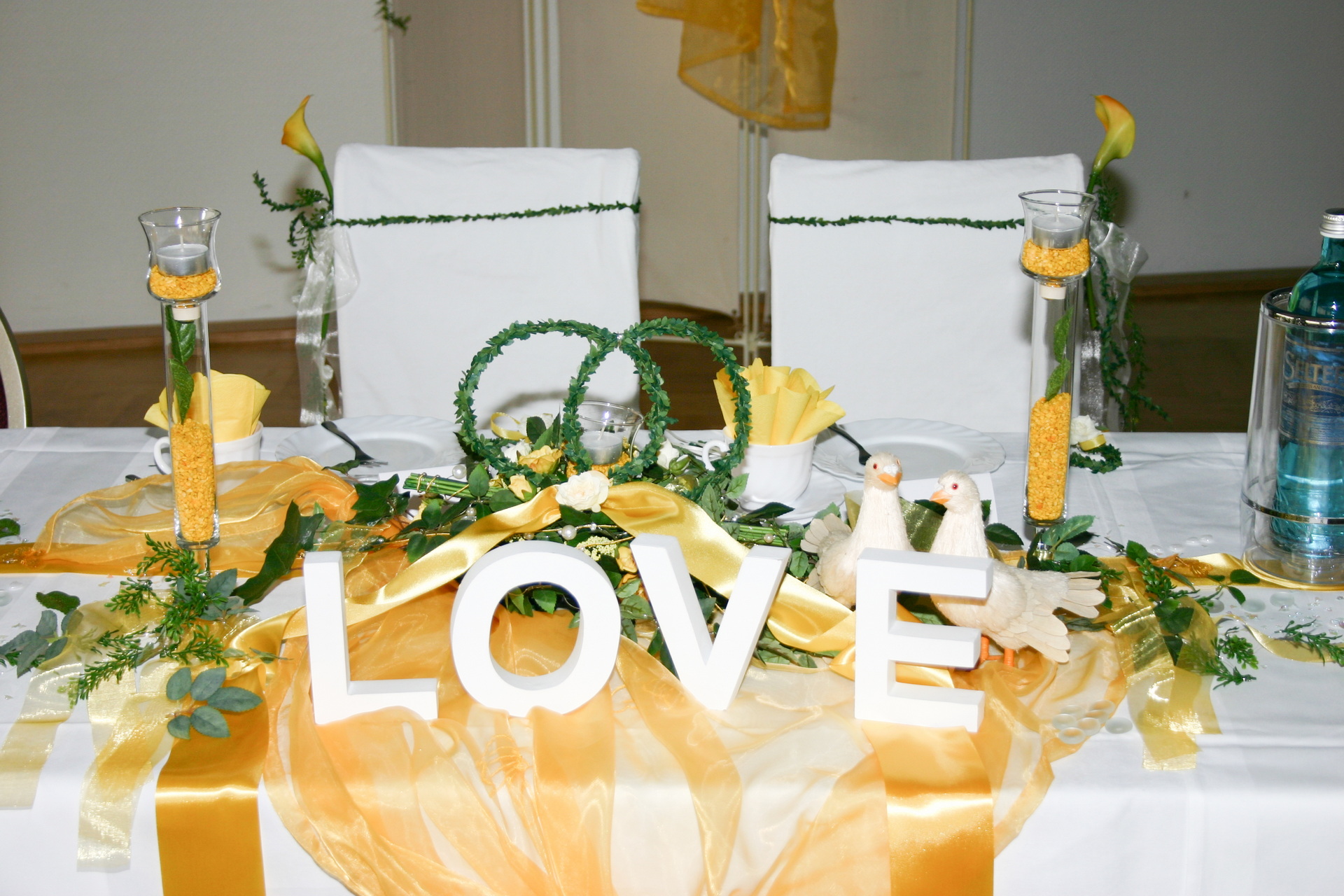 Für die individuelle Gestaltung Ihrer Dekoration steht Ihnen unser Partner, die Dekorateurin Frau Buhl, zur Verfügung. Sie vereinbaren einen Termin mit ihr und suchen sich Ihre Wunschdekoration direkt bei ihr aus. Es stehen sehr viele Gestaltungsmöglichkeiten zur Verfügung. Die Kosten für eine solche Dekoration rechnen Sie direkt mit Frau Buhl ab. Allerdings sollten Sie sich damit nicht all zu lange Zeit lassen. Sie ist sehr beliebt und viel gebucht.